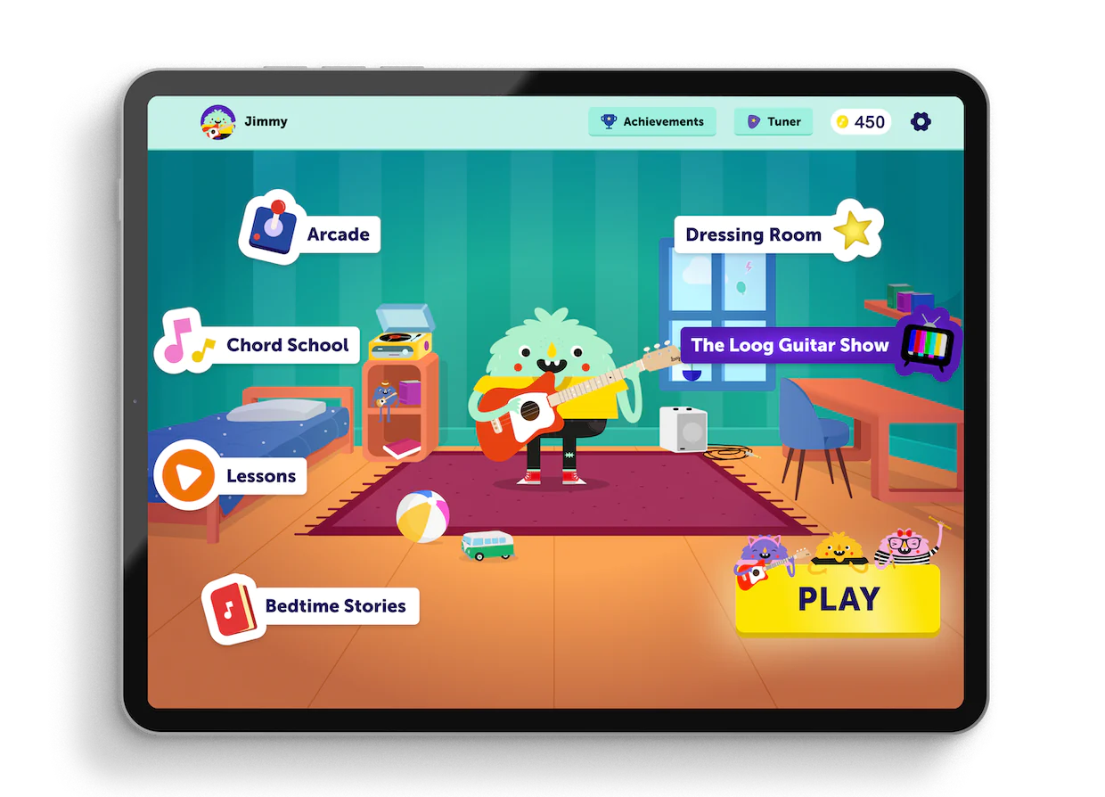 The free Loog app has a tuner, lessons, games and friendly monsters :) With a backstage pass™ membership you also get access to a songbook with 200 songs (Beatles, Taylor Swift, Bruno Mars and more) and even an interactive TV show starring... you!