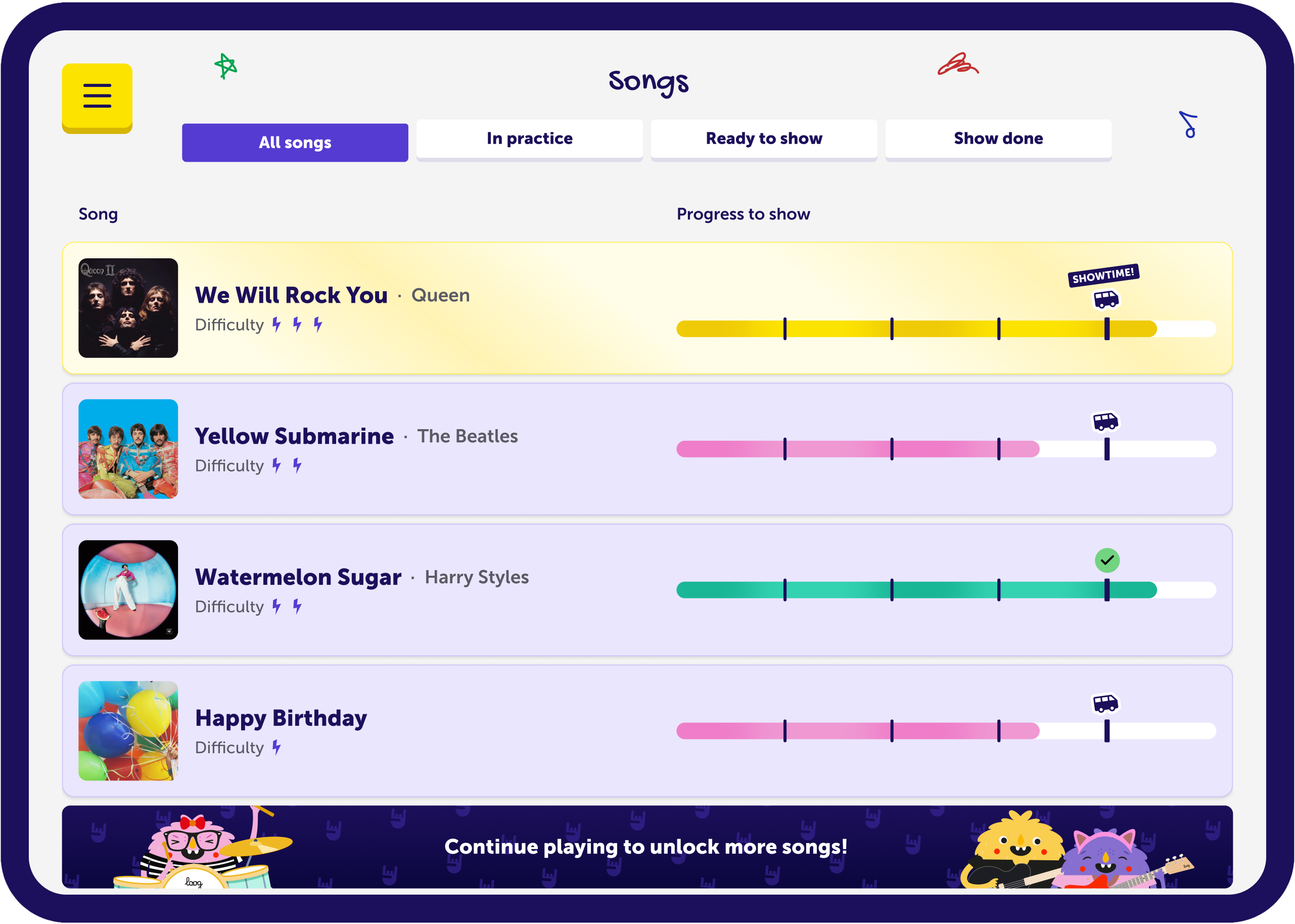 A gamified learning experience that allows kids to improve their guitar skills while having fun.