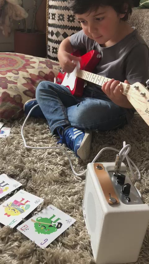 A small 3-string electric guitar! The Loog Pro Electric comes bundled with flashcards and free video lessons. With Loog, kids get to play songs from the very beginning, feeling rewarded and encouraged to keep on playing and learning.
